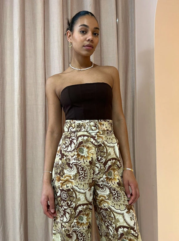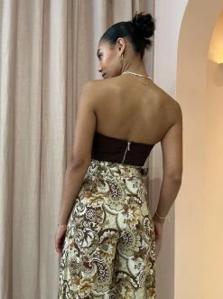 Add a versatile crop to your wardrobe with Bec & Bridge’s Paloma Corset in Chocolate. Cut from a Nylon blend fabrication with a slight stretch, this cropped corset sits tightly fitted to the body and features boning throughout and an exposed zipper at the back. Designed to highlight the décolletage with its strapless silhouette, Coco girls love the versatility of this corset for wearing on its own with the matching pants for a set look or under your favourite blazer as you go from desk to dusk. DETAILS & CARE Fabric: 91% nylon, 9% elastane – Strapless - Cropped silhouette - Boning throughout - Exposed open end metal zipper at back - Slight stretch to fabric Care instructions: Cold hand wash separately. Do not dry clean. Our Coco girl Eden & Boston wears a Size 8 AU / Small.Eden's height is 175cm & Boston's Height is 178cm. COCO STYLING TIP Complete with the Bec + Bridge Paloma Pant in Chocolate, Mara & Mine Delfine Heel in Black,Reliquia Portovenere Necklace in Gold, Porter 90s Hoop 12mm in Gold, Porter Heritage Bracelet in Gold, Porter Frill Cuff in Gold, Porter Wave Croissant Earrings in Gold and Porter Triple Heirloom Ring in Gold. Pair back with Ksubi Dettached Jean in Haven, Alias Mae Cassie Heel in Natural, Reliquia Lucille Earrings in Gold, and Arms Of Eve Rae Chain Necklace in Gold. Add a print the with Alemais Phillipa Pant in Tan Floral.
