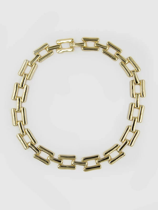 Re-inspire your everyday wardrobe with the Agnes Choker in Gold by Brie Leon. Crafted from a Brass base plated in 14k Gold, this handcrafted chain was inspired by classic watch links and features an organic soft edged finish. Inspired by the summer sun, add a touch of shimmer to elevate your work to weekend wear DETAILS & CARE Material: Main: Brass Base, Polished 14k Gold Plating Measurement: 1.5 x 0.4cm- Choker necklace- Hook closureCare Instructions: Keep dry at all times. Avoid contact with chemicals and water.