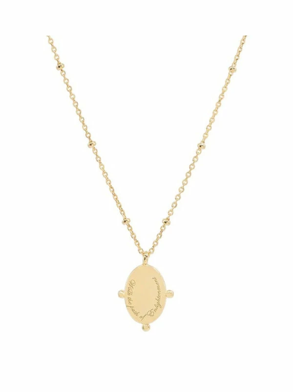 Treasure life's special moments with the Path of Life Necklace in Gold from By Charlotte. Crafted in 18k Gold Vermeil, this 18 inch adjustable necklace features the Path of Life symbol and is inscribed with "walk the path of enlightenment". Coco girls love this special piece as a reminder to motivate and guide themselves through life's moments and to perfectly layer with the Moonlight Necklace from By Charlotte. DETAILS & CARE Material: 18kt Gold Vermeil Measurements: 18 inches, adjustable to 15 or 16 inches Pendant size: 9 x 12mm; set with Cubic Zirconia crystal Ball finishings approx: 1.5 x 1.5mm – Pendant has a battered finish on the front – Back is shiny and engraved with "Walk the path of enlightenment" – Comes with iconic pink By Charlotte box Care Instructions: Exposure to water and moisture such as showering, hand washing and swimming can cause jewels to tarnish. Contact with perfume and cosmetic products can damage gold plated and sterling silver jewellery. Keep the anti-tarnishing tabs with jewels to protect against moisture during storage. Only clean your jewels using the By Charlotte polishing cloth provided.