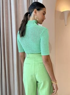 Explore luxe statement essentials with Camilla and Marc's Amber Short Sleeve Knit Top in Apple. Carefully designed from a corded yarn that's spun from cotton, this sheer knit is designed to be fitted and features elbow-length sleeves and a funnel neck collar. Adored for its Summery apple hue and simplistic versatility, Coco girls adore this piece with the matching Idra Pant in Meadow Green or with a white pair of tailored pants. DETAILS & CARE Fabric: Main 70% Cotton, 30% Polyamide- Elbow-length sleeves- Open stripe lattice knit- Corded yarn- Grown on funnel neck collar- Designed for a close fitCare Instructions: Gentle cold hand wash separately using a mild detergent. Our Coco girl Eden wears a size AU 8 / small.Eden’s height is 175 cm. COCO STYLING TIP For special occasion styling, complete the look with the Camilla and Marc Indra Pant in Meadow Green, Alemais Infinity Earrings in Gold, Porter Triple Heirloom Ring in Gold, Porter Pond Ring in Gold, Amber Sceats Helena Bracelet in Gold and the Alias Mae Molly Heel in Cream.
