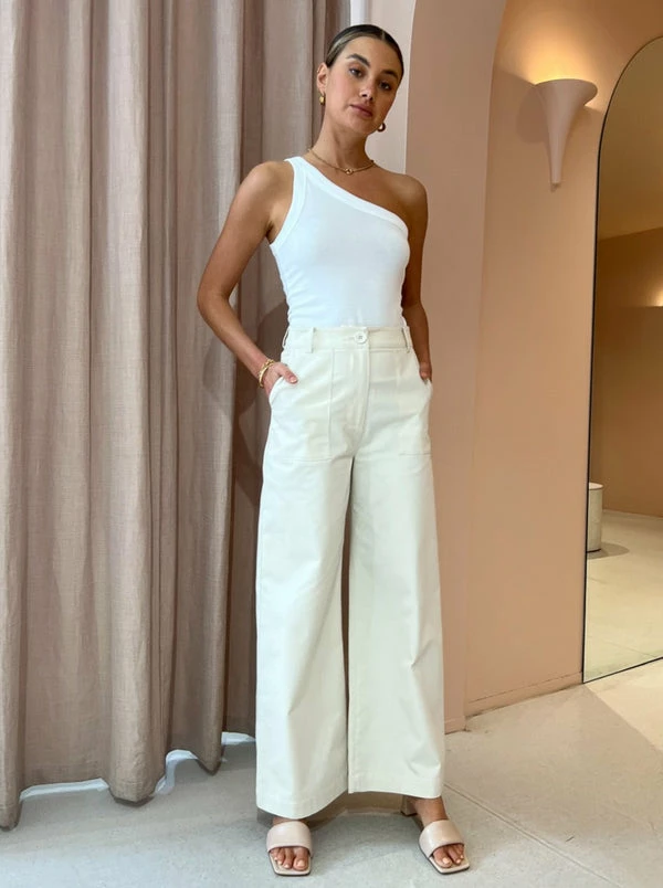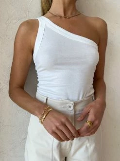 CAMILLA AND MARC reimagine a staple wardrobe hero with the Park One Shoulder Tank in Soft White. Crafted from a lightweight and comfortably soft cotton, this one shoulder silhouette features a wide rib bind at the neck and arm. Defining modern minimalism, Coco girls love this tank for their rotational on or off-duty wardrobe, from everything to office styling or weekend brunches with the girls. DETAILS & CARE Fabric: 100% Cotton – One shoulder tank – Wide rib bind at the neck and arm – Size down for a fitted look Our Coco girl Eden wears a size 8 AU / small. Eden's height is 175cm. COCO STYLING TIP Complete with the Anna Quan Joseph Pants in Milk, Alias Mae Ari Heel in Cream, Reliquia Trending Upwards Hoops in Gold, Porter Belcher Bolt Ring Necklace in Gold, Amber Sceats Coco Bracelet in Gold, Porter Heirloom Bangle in Gold and Porter Wave Croissant Ring in Gold.
