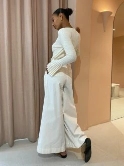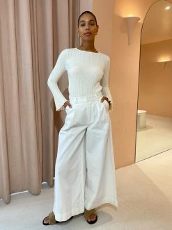 Curate your trans-seasonal wardrobe around our favourite Friends with Frank Cleo Top in Cream.Crafted from a soft and comfortable Cotton rib knit, this relaxed fit long sleeve top provides a flattering silhouette for you to style your way. With attention to detail at the forefront of this timeless design with subtle flared sleeves, this knit top will add a chic minimalistic touch to 9 to 5 dressing. DETAILS & CARE Fabric: 100% cotton rib knit- Flared sleeve detail- Round neckline- True to size for a relaxed fit- Due to the pure cotton composition, the knit will stretch slightly and mould to the body with wear. Simply cold hand wash to bring back to a more fitted shapeOur Coco girl Eden wears a Size AU 8 / Small.Eden's height is 175cm. Size down if you are between sizes, or prefer a more fitted look. COCO STYLING TIP Complete this monochromatic ensemble for your desk to dusk days with the Magali Pascal Georgina Pants in Off White, James Smith La Sponda Slide in Chestnut Sherpa, Porter Wave Croissant Earrings in Gold, Amber Sceats Coco Necklace in Gold and Amber Sceats Charli Ring in Gold.