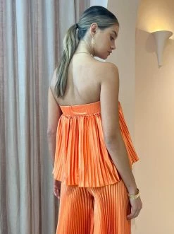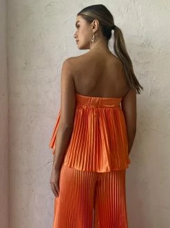 Add a voluminous twist to your crop repertoire with L'IDÉE WOMAN's Reveries Crop in Tangelo. Crafted from their signature pleated fabrication, this strapless crop is elasticated around the top and features an extravagant one tiered umbrella silhouette.Embracing the décolletage this perfectly bold top can be perfectly paired with the Bisous Pant for twilight cocktails and birthday celebrations. DETAILS & CARE Fabric: 100% High Grade Polyester – One tiered umbrella silhouette- Elasticated band around the top- Slip on silhouette- Strapless necklineOur Coco girl Eden wears a Size AU 8 / Small.Eden's height is 175cm. Please note: Pleating is an art and each item is unique and delicate. Small imperfections naturally occur. COCO STYLING TIP Complete this ensemble with the matching Bisous Pant in Tangelo and a pair of Alias Mae Cassie Heels in Natural. Never forget a subtle shimmer with the Amber Sceats Schiffer Necklace in Gold and Charlie Ring in Gold, the Reliquia Telde Earrings in Gold and Porter Heritage Bracelet and Frill Cuff in Gold.