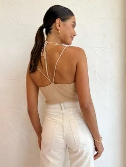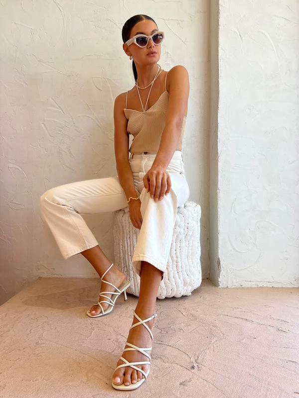 Invest in summer statement staples with the Manning Cartell No Limits Knit Cami in Biscuit. Delicately crafted from a stretchy ribbed material, this knitted cami features thin rouleau straps, removable halter straps and a sweetheart neckline that is designed to finish at the waist. Coveted for its removable halter straps and neutral hue, pair this with your work-to-weekend wear Coco essentials for an elevated flare. DETAILS & CARE Fabric: Main: 65% Recycled Viscose, 35% Nylon- Knitted top- Designed for a slim fit- Stretchy ribbed material- Thin rouleau straps- Fitted silhouette- Sweetheart neckline- Ribbed material- Straight hemline- Removable halter strapsCare Instructions: Cold hand washOur Coco girl Eden wears a size AU 8 / small.Eden’s height is 175 cm. COCO STYLING TIP Complete the look with the Nobody Hardy Jean in Milk, Camilla and Marc Vigo Heel in Ivory, Porter Tear Drop Earrings in Gold, Arms of Eve Rae Chain Necklace in Gold, Porter Wave Croissant Ring in Gold, Amber Sceats Helena Bracelet in Gold, and the Porter Triple Heirloom Ring in Gold.