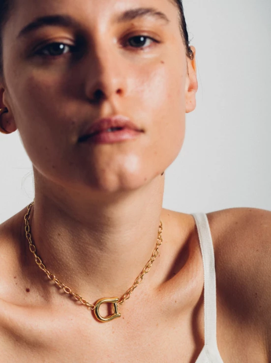 The Released From Love Horsehoe Choker is the latest 90s inspired obsession on repeat in the Coco closet. Designed with the Coco girl in mind, the Horseshoe Choker is inspired by the aesthetic contradiction between perfect and imperfect. A statement everyday piece, this must have choker is lightweight, crafted from 23kt gold vermeil coated over a sterling silver base. Sitting high on the neckline with a 41cm chain, Coco girls love this style for twilight cocktails and romantic dinner dates. DETAILS & CARE Material: 23kt Gold Vermeil Weight: 7 Grams Measurements: 41cm chain length – Anti-tarnish bag included for storage made from organic fair-trade cotton Care Instructions: Each RFL piece is handmade from precious metals and requires delicate care. We recommend storing your jewellery in a cool, dark place when not worn. Gold vermeil is a layer of gold over sterling silver and is vulnerable to knocks, chlorine, soap, make-up, perfume and sweat as these agent can strip the gold. Vermeil will anturally wear over time, so we recommend removing your jewellery when sleeping, exercising, swimming or showering to increase the longevity fo your piece. Gently clean use a soft cloth without any polishing agents or chemicals. COCO STYLING TIP We love to style this beautiful choker with the equally modern Classic Ear Cuff 001 from Released From Love.