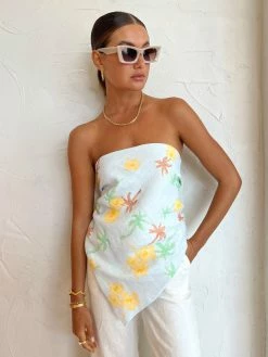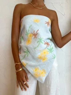 Spend your summer days basking in the Farrah Scarf in Palmero from ROAME. Crafted from a lightweight linen fabrication with an exclusive ROAME print, this scarf is designed to elevate any look. Adored for its versatility and summer hues, Coco girls love pairing this scarf back with denim or as an elevated hair or bag accessory. DETAILS & CARE Fabric: 100% Linen- Pure linen fabrication- Designed to allow styling as a top or headscarf- Print exclusive to ROAMECare Instructions: Cold gentle machine wash. Dry cleanable. Our Coco girl Eden wears a size AU 8 / small.Eden’s height is 175 cm. COCO STYLING TIP Complete the look with the Assembly Label Leia Linen Pant in Antique White, Alohas Twist Strap in Camel, Amber Sceats Bella Earrings in Gold, Porter Chunky Belcher Necklace 2.0 in Gold, Porter Chunky Belcher Bracelet in Gold, Amber Sceats Lane Ring in Gold, Amber Sceats Electra Ring Set in Gold and the Amber Sceats Helena Bracelet in Gold.