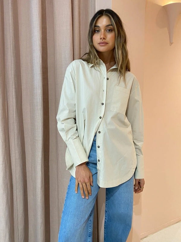 Shona Joy reintroduce timeless tailoring to our Coco wardrobe with the Isabella Button Up Boyfriend Shirt in Chalk. Cut from a crisp Cotton fabrication and referencing signature soft tailoring, this relaxed fit shirt features a structured collar, button down front placket, buttoned cuffs and a single chest pocket.Designed to sit oversized on the body, this tonal shirt will be worn on repeat for those office days and elevated off duty looks. DETAILS & CARE Fabric: 100% Organic Cotton – Oversized man style shirt- Traditional collar- Front chest patch pocket- Buttoned cuffs- Button down front placketCare instructions: Cold hand wash separately using mild soap. Do not bleach/soak/wring or tumble dry.Our Coco girl Eden wears a Size 8 AU / Small.Eden's Height is 175cm. COCO STYLING TIP For a laidback look, complete with the Nobody Skylar Jean Long in Balance, Alohas Marshmallow Scacchi Sandals in Stone/Beige/Ivory and accessorise with the Porter Margot Ring in Gold.