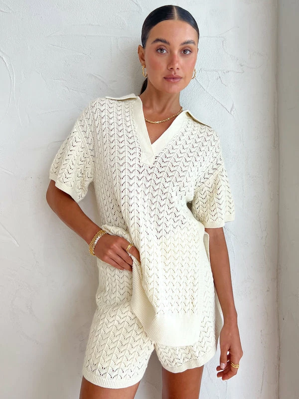 We can't help but daydream of tropical locals with Shona Joy's Mikala Crochet Short in Coconut. Crafted from 100% cotton ripple crochet fabric, these elasticated high-waisted shorts feature a flared short leg that is semi-sheer. Adored for their relaxed silhouette and neutral hues, these Crochet shorts will be a summer essential for on-repeat wear. DETAILS & CARE Fabric: Main: 100% Cotton- Cotton ripple crochet stitch- Semi-sheer- Elasticated high waistband- Flared short legCare Instructions: Cold hand wash. Lay flat in the shade to dry. Our Coco girl Eden wears a size AU 8 / small.Eden’s height is 175cm. COCO STYLING TIP Complete the set with the Shona Joy Mikala Polo Top in Coconut, Alohas Pad Sandal in Tan, Reliquia Sevilla Earrings in Gold, Porter Chunky Belcher Bracelet in Gold, Porter Baby Link 2.0 in Gold, Arms of Eve Rae Chain Necklace in Gold, Amber Sceats Diana Ring in Gold and the Amber Sceats Grande Helena Ring in Gold.