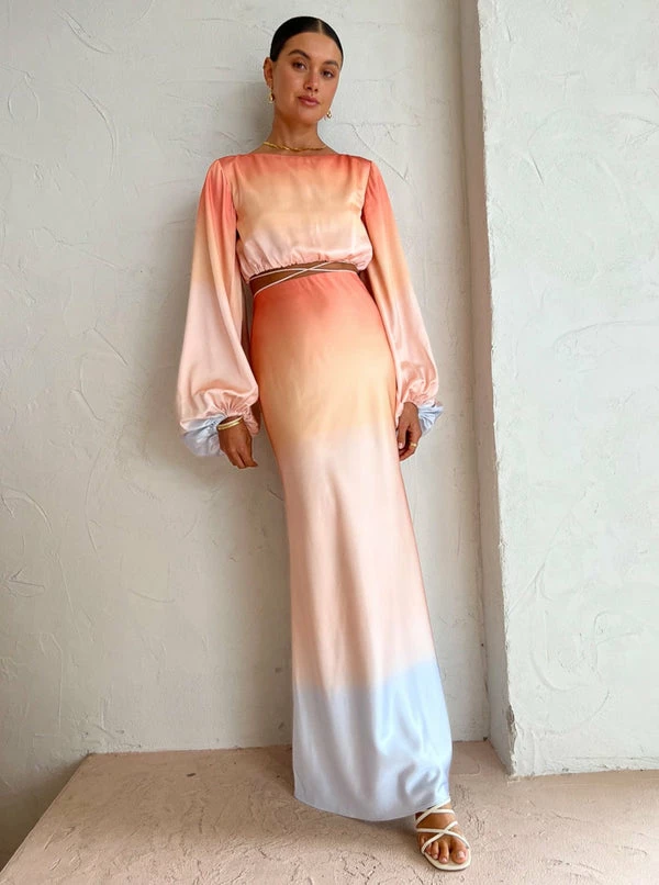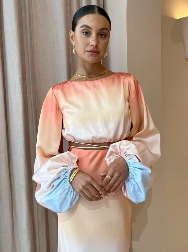 Spend your afternoons under the sunset with the Significant Other Karli Top in Horizon. Delicately crafted from a soft Viscose blend, this long sleeve-cropped top features an elasticated waist and self-tie straps and a high neckline. Coveted for its flattering silhouette and exaggerated sleeves, pair this with the matching Karli Skirt in Horizon for a complete formal soiree. DETAILS & CARE Fabric: Main: 62% Viscose Rayon, 38% PolyesterLining: 97% Polyester, 3% Elastane- Cropped long sleeve – Exaggerated sleeves with elasticated cuffs- Elasticated waist- Adjustable self-tie straps at the waist- High neckline Our Coco girl Eden wears a size AU 8 / small.Eden’s height is 175 cm. COCO STYLING TIP Complete the set with the Significant Other Skirt in Horizon, By Charlotte Stardust Cuff in Gold, By Charlotte Dream Weaver Cuff in Gold, LMS The Violet in White, Porter Hailey Twist Necklace in Gold, Amber Sceats Emma Earrings in Gold, By Charlotte Align Your Soul Ring in Gold and the Amber Sceats Electra Ring Set in Gold.