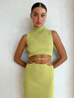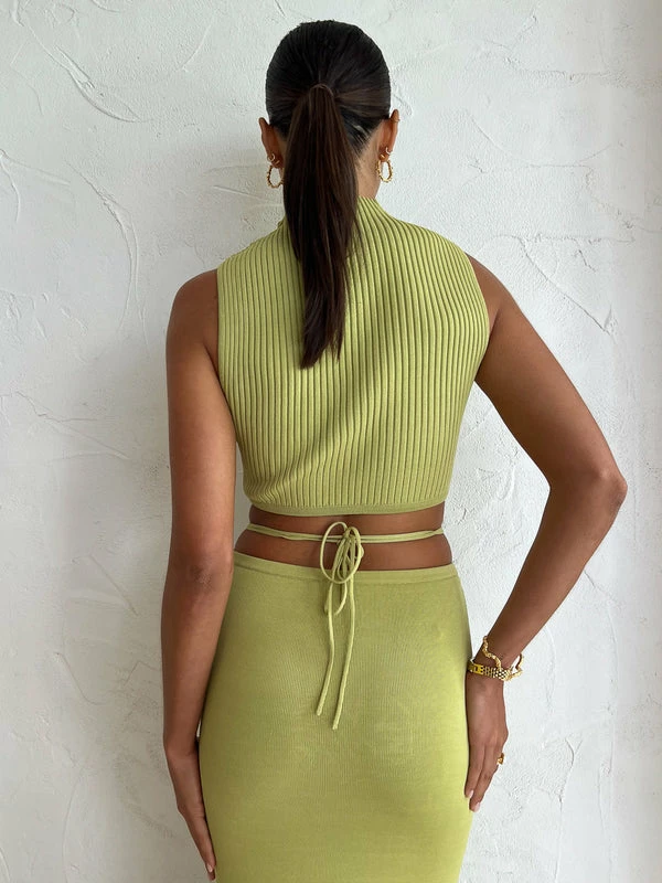 Complete the Summer Vacation wardrobe with the Skye Skirt in Avocado by Significant Other. Crafted from a luxe ribbed knit fabrication, this cropped top is designed to be fitted and features a cross-body tie at the waist to polish this style.Coveted for its versatility, pair it with denim for an off-duty look or with the matching Skye Skirt for any sunshine occasion. DETAILS & CARE Fabric: 50% Viscose, 50% Nylon- Stretch fabrication- Cropped style- Adjustable tie detail at the waistOur Coco girl Eden wears a size AU 8 / small.Eden's height is 175cm. COCO STYLING TIP Finish the look with the LMS The Violet in White, Amber Sceats Bella Earring in Gold, Amber Sceats Lane Ring in Gold, Amber Sceats Electra Ring Set in Gold, Porter Pond Ring in Gold, Amber Sceats Helena Bracelet in Gold, and the Porter Chunky Belcher Bracelet in Gold.