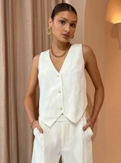 SIR. pay homage to 70's style codes with Clemence Vest in Ivory. Carefully crafted from a soft and textured Italian linen blend, this vest features a flattering V neckline, peaked hem and centre front placket.With versatility at the heart of its design, the Clemence Vest can be styled with denim or the matching Clemence Trouser in Ivory for everyday errands through to life's special moments. DETAILS & CARE Fabric: Main: 58% Viscose 42% Linen Lining: 100% Rayon- Peaked hem- Centre front placket- Relaxed fit- Fully lined- Non-stretch- A soft and textured heavyweight Italian linen/viscose blendCare Instructions: Dry Clean OnlyOur Coco girl Ella wears a size AU 8 / small.Ella’s height is 176cm. COCO STYLING TIP Complete the look with the SIR. Clemence Trouser in Ivory, Camilla and Marc Vigo Heels in Ivory, Reliquia Over and Over Earrings in Gold, Porter Chunky Belcher Necklace 2.0 in Gold, Porter Pond Bangle In Gold, Porter Wave Ring Set in Gold, Porter Chunky Belcher Bracelet in Gold and the Porter Harp Ring in Gold