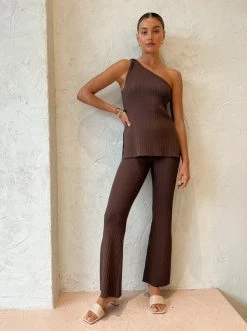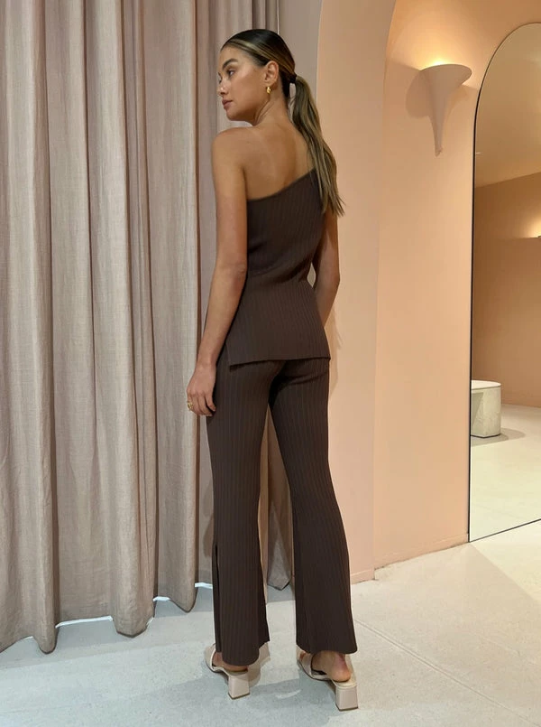 Celebrate timeless styling with the SIR. classic, the Sylvie Top in Chocolate. Crafted from the signature soft slub ribbed knit, this one shoulder top features a twist detail on the shoulder and is finished with side slits for a relaxed silhouette. With the contemporary cut and luxe chocolate hue, this longline tank is the perfect pairing for elevated essentials styling throughout the week. DETAILS & CARE Fabric: 67% Viscose, 33% Nylon – One shoulder – Twist shoulder detail – Long line tank – A soft mid-weight slub texture rib knit – Full stretch – True to size Care Instructions: Dry clean only. Our Coco girl Eden wears a size 1 / AU 8 / small.Eden’s height is 175cm. COCO STYLING TIP Complete this set with the Sir Sylvie Pant in Chocolate, Alias Mae Ari Heels in Cream, Porter Tear Drop Earrings in Gold, Porter Harp Ring in Gold, Porter Pond Ring in Gold, Porter Pond Bangle in Gold, Porter Wave Ring Set in Gold, and the Porter Chunky Belcher Bracelet in Gold.