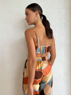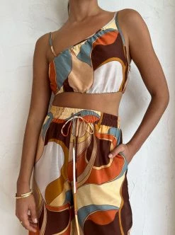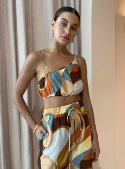 With a nod to the '60s, re-invent your elevated separates with the Vista Crop in Vista Print by SIR. Delicately crafted from a lightweight silk-cotton blend, this vibrant crop top features an asymmetric neckline with gathering through the bodice, rouleau straps and boning at the side seam. Coveted for its abstract psychedelic print, the Vista Crop is a timeless and versatile piece for everyday styling through to your summer soirees. DETAILS & CARE Fabric: Main: 79% Cotton, 21% Silk Lining: 100% Rayon- Cropped length- Thin rouleau straps- Asymmetric neckline- Boning at the side seam- Elasticated back neck- Print exclusive to SIR. – Fully lined- A lightweight silk cotton blend with a slight sheen- No stretch- True to sizeCare Instructions: Dry Clean Only.Our Coco girl Eden wears a size AU 8 / small.Eden's height is 175 cm. COCO STYLING TIP Complete the look with the SIR. Vista Shirt in Vista Print, SIR. Vista Pant in Vista Print, Amber Sceats Hunter Bracelet in Gold, Amber Sceats Lars Bracelet in Gold, Brie Leon Mini Sol Sleepers in Gold and the Amber Sceats Diana Ring in Gold.