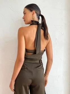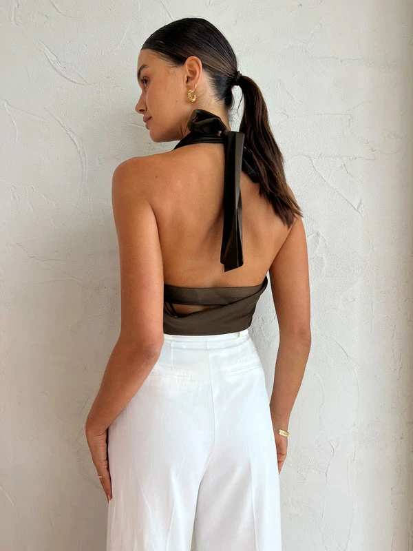 TOJHÁ has you covered for skimming silhouette separates with the Bruna Top in Fudge.Crafted from a soft luxe fabrication, this cowl neck draped top features a neck tie and functional side seam zip.Draping effortlessly from the back with a thick elastic strap, pair it back with denim or the matching Cami Pant for an elevated look. DETAILS & CARE Fabric: Main: 100% Cotton- Cow neck draped top- Draped back feature with thick elastic strap- Luxe fabrication- Neck tie- Functional side seam zip- Fully linedCare Instructions: Cold gentle machine washOur Coco girl Eden wears a size AU 8 / small.Eden’s height is 175 cm. COCO STYLING TIP Complete the look with the Porter Margot Ring in Gold, Porter Pond Ring in Gold, Porter Wave Croissant Ring in Gold, Amber Sceats Coco Bracelet in Gold, Porter Spiral Hoops in Gold, Porter Hailey Twist Necklace in Gold and the Camilla and Marc Twister Flat Sandal in Black.