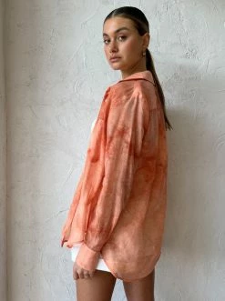 Add a striking addition to your shirting with the Viktoria & Woods Parish Shirt in Peach. Crafted from a luxurious modal blend, this shirt has been dyed in a Japanese shibori technique to give a unique peach hued pattern. Sitting oversized and relaxed in its silhouette this shirt is contrasted with its tailored collar, button through front placket, fitted cuffs and front patch pockets. Coco girls adore this shirt for pairing with their off duty ensembles or elevating with the desk to dusk wardrobe. DETAILS & CARE Fabric: 70% Modal, 30% Nylon – Tailored shirt – Relaxed shape – Patch pockets on front – Fitted cuff with matching buttons – Front button placket – Japanese inspired shibori technique used to dye fabric – Tailored shirt collar Our Coco girl Eden wears a size 8 AU / small. Eden's height is 175cm. COCO STYLING TIP Complete this effortless styling ensemble with the Viktoria & Woods Lavina Knit Bralette in Ivory, Bec + Bridge Pamela Short in Ivory, Alias Mae Parlo Slides in Cream, Porter Hailey Snake Chain in Gold and the Reliquia Sevilla Earrings in Gold.